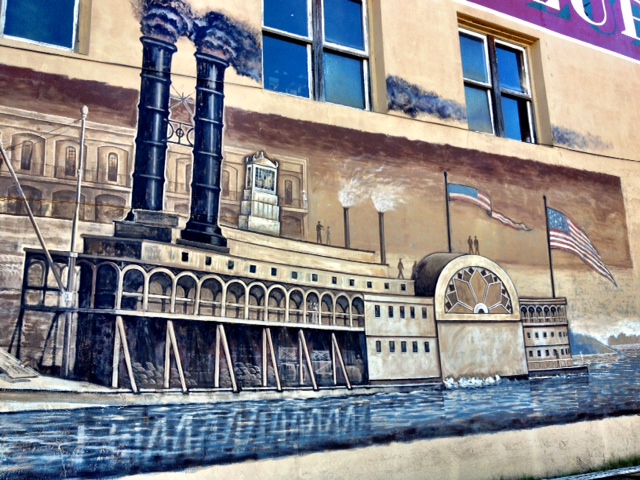 One of Jefferson Texas’ most documented tragedies was the sinking of the Mittie Stephens Steamboat. The Mittie Stephens was built in Madison, IN as a troop and transport boat for the Federal forces in 1862. This year marks a 150 year anniversary for this distinguished boat. I find it very appropriate that when the bar and restaurant Auntie Skinners Riverboat Club decided to use this boat as the star of a new mural they have commissioned for the side of their building a beautiful tribute to the Steamboat and the lives that were lost so many years ago.