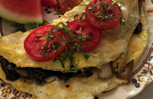 The breakfast table in the dining room will be set with glittering utensils, sparkling glasses, and a centerpiece for the occasion. Once you’ve been seated, we will begin serving you with juice and our first course, usually consisting of a fruit dish. The entree is then served, and you may eat at your leisure. We are more than happy to continue filling your juice and coffee to your heart’s content.